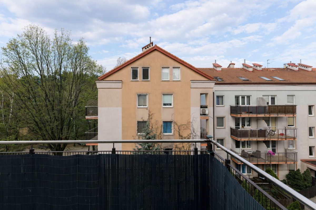 * Okolica łączy wygodną infrastrukturę miejską z dużą ilością zieleni i terenów rekreacyjnych. W bezpośrednim sąsiedztwie znajduje się Park Ireny Jarockiej, na który rozpościera się widok z balkonu mieszkania. Dzięki tej ekspozycji oraz temu, że lokal znajduje się na ostatnim piętrze budynku, mieszkanie jest bardzo ciche i kameralne - nie ma sąsiadów nad głową, a za oknami widać zieleń.