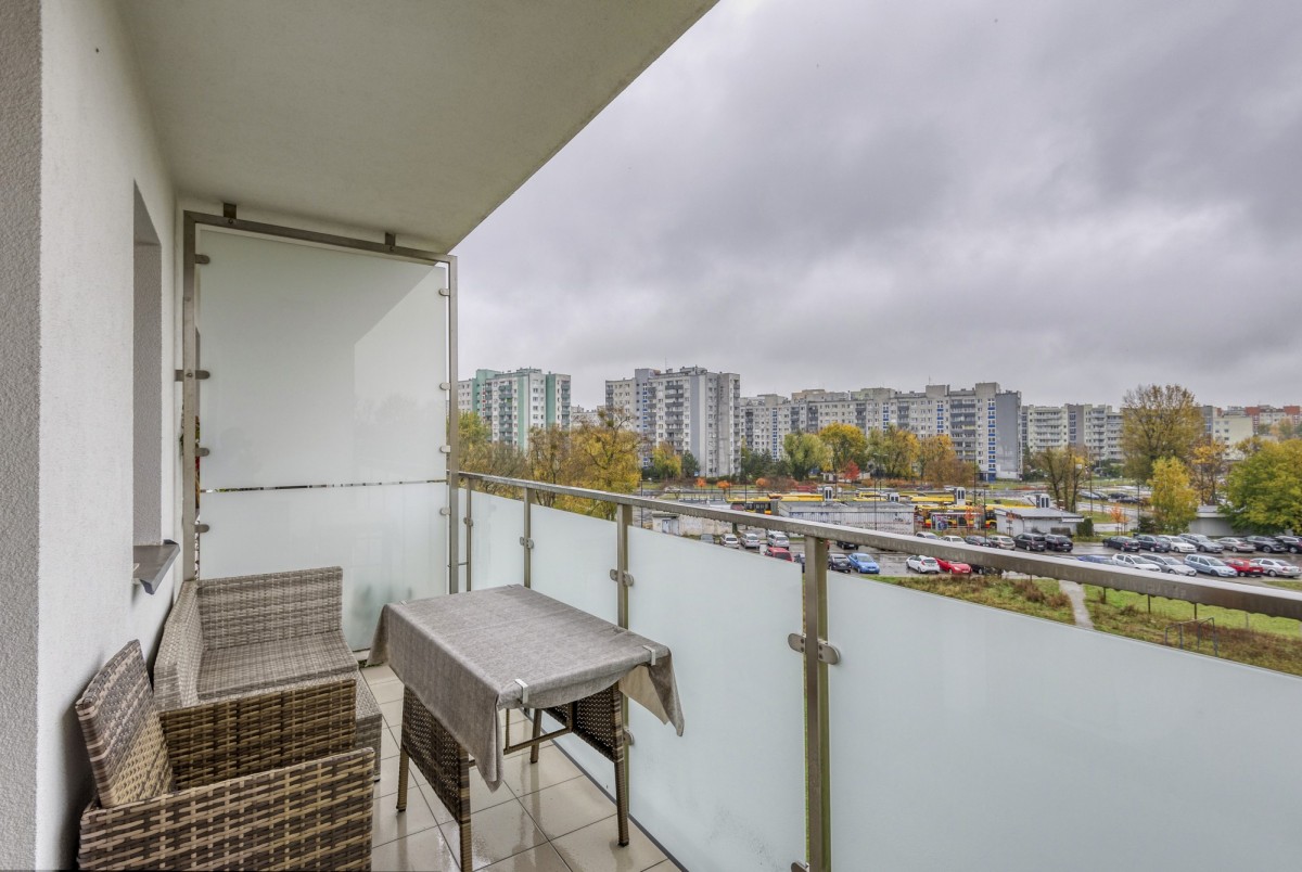 Dla osób pracujących w centrum czy korzystających z kolejowych połączeń — dojazd jest stosunkowo wygodny. W bezpośrednim sąsiedztwie mieszkania znajduje się pętla autobusowa Chomiczówka, co znacznie podnosi komfort codziennych dojazdów. Przystanek ten obsługują m.in. linie 116, 121, 171, 180 oraz nocna N43. Dzięki temu mieszkańcy mają wygodny dostęp do różnych rejonów Warszawy zarówno w ciągu dnia, jak i nocą.