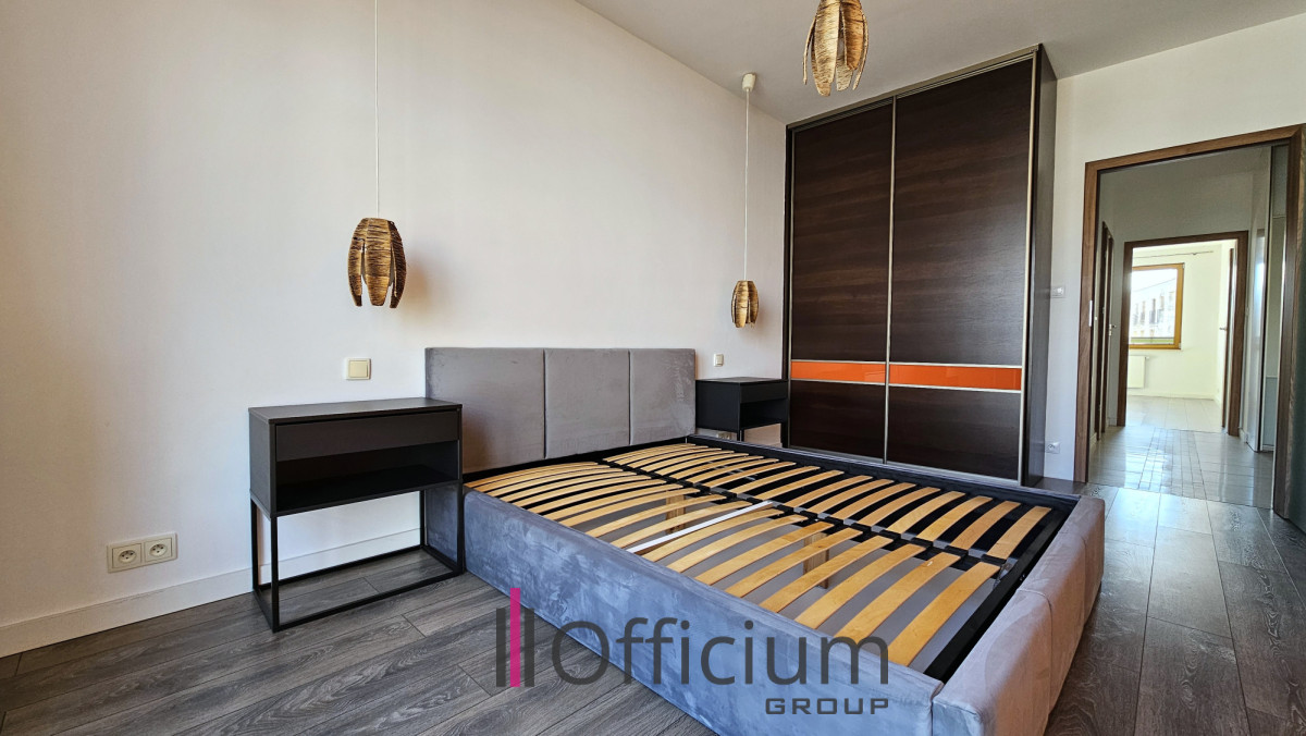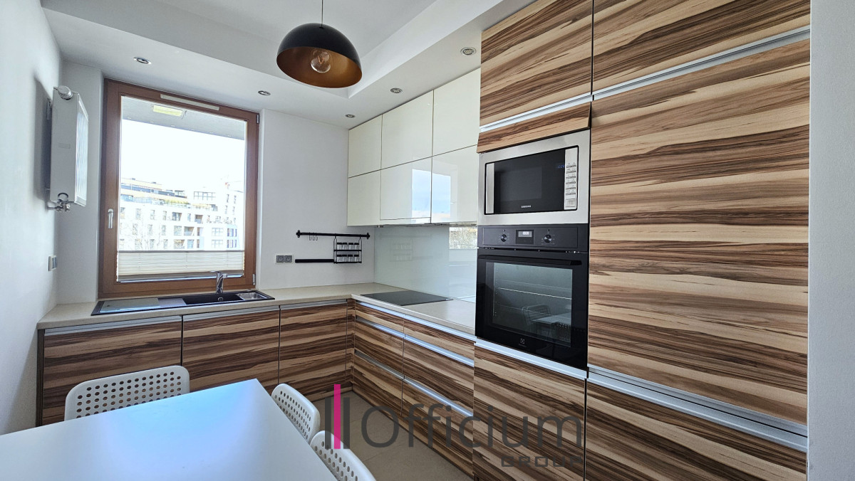 Mieszkanie jest nowocześnie urządzone o pow. 80,08 m2, usytuowane na 3-piętrze nowoczesnego budynku z windą przy ulicy Obrzeżnej. Osiedle strzeżone, ochrona 24 h, wykończenia części wspólnych o najwyższym standardzie. Apartament położony w środkowej części zabudowy przez co jest bardzo cichy. Mieszkanie gustownie zaprojektowane i solidnie wykończone, składa się z: salonu(22,45m2), widnej kuchni(8,10m2), 2 sypialni(14,76m2 i 14,78m2), łazienki z wanną 4,95m2, WC 1,96m2, przedpokoju(12,36m2) i balkonu(10,55m2). Kuchnia wyposażona w sprzęt AGD wysokiej jakości (zmywarka, lodówko-zamrażarka, piekarnik, płyta indukcyjna itp.). Apartament w pełni umeblowany, jak na zdjęciach. Dodatkowym atutem tej nieruchomości jest miejsce postojowe w garażu podziemnym oraz duża komórka lokatorska(5,08m2).