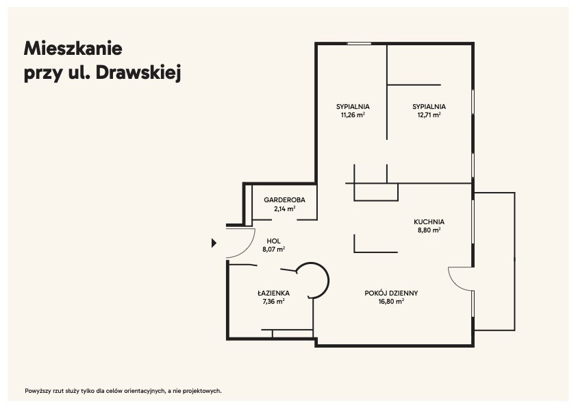 To mieszkanie będzie idealne dla rodziny 2+1, dla pary, która potrzebuje dodatkowego pokoju gościnnego lub do pracy, jak również dla singla ceniącego przestrzeń i funkcjonalny układ.