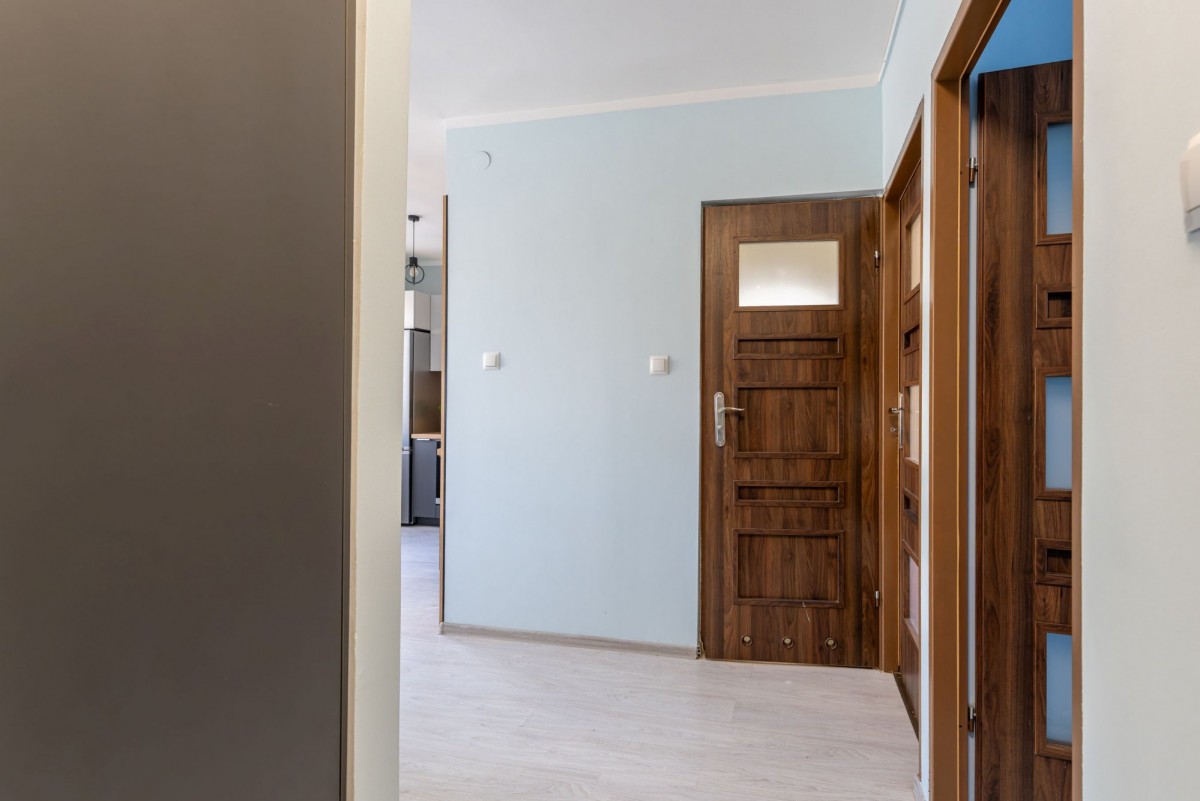 Pięknie wykończone 48 m2 mieszkanie na pierwszym piętrze odnowionego budynku z windą to cudowna zapowiedź przytulnego azylu, namiastki prawdziwego domu w wielkim mieście. Już od wejścia do klatki schodowej wyłożonej stylowym gresem miejsce to zachwyca świeżością i funkcjonalnością. Na idealnym wręcz metrażu, lokum łączy przestronny przedpokój z korytarzem i dużą zabudowaną szafą, obszerny 16 m2 salon z wnoszącym do wnętrza obfitość światła dwudrzwiowym wyjściem na 6,5 m2 loggię, komfortową 9,5 m2 sypialnię, łazienkę oraz kuchnię otwartą na jadalnię. Za oknami nie nuży przy tym szarość budynków, a wręcz zachwyca kojący widok na pasmo drzew. Jeżeli zależy Ci na dodatkowej przestrzeni do przechowywania, do mieszkania przynależy 5 m2 piwnica.