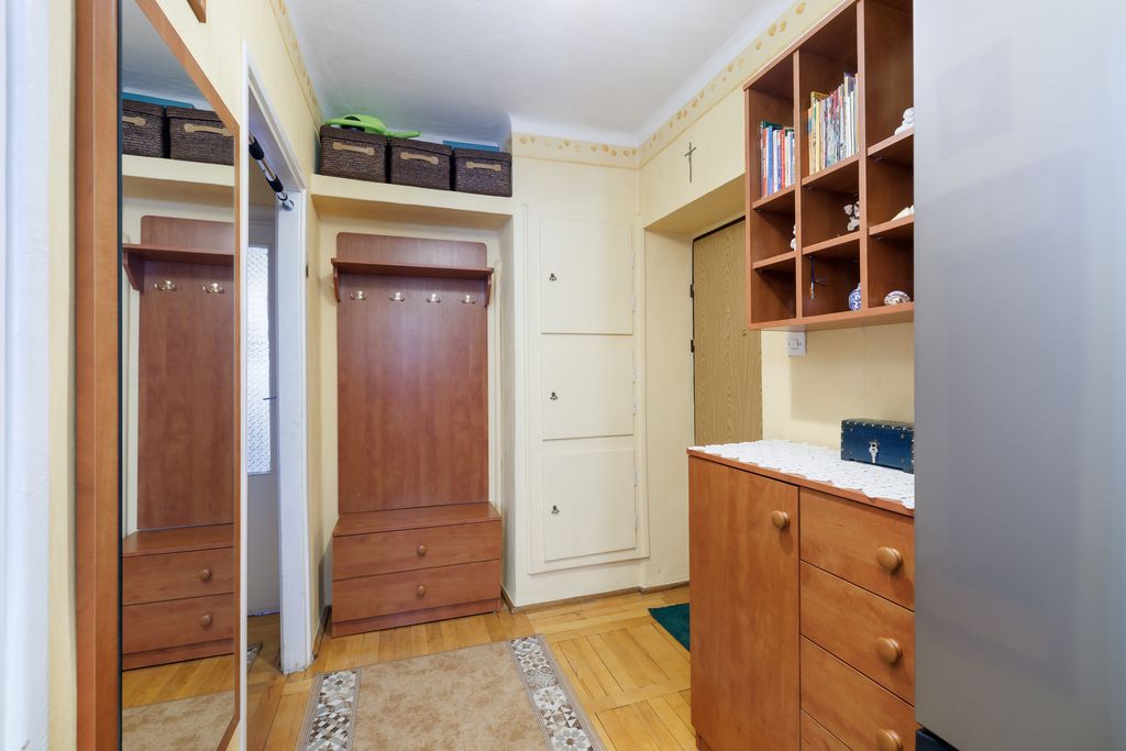 Na podłogach w pokojach i przedpokoju ułożony jest drewniany parkiet, a w kuchni, łazience i na balkonie terakota.