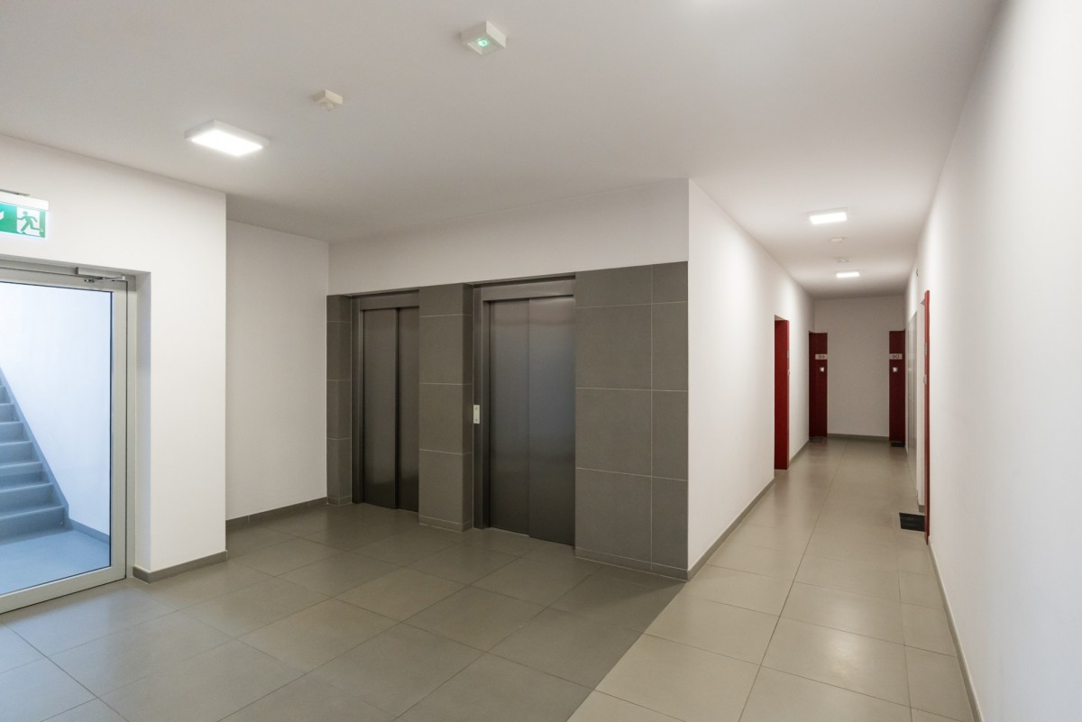 Wysoki, 16 piętrowy apartamentowiec z 2016 roku. W budynku 2 windy oraz 2 poziomy garaży podziemnych.