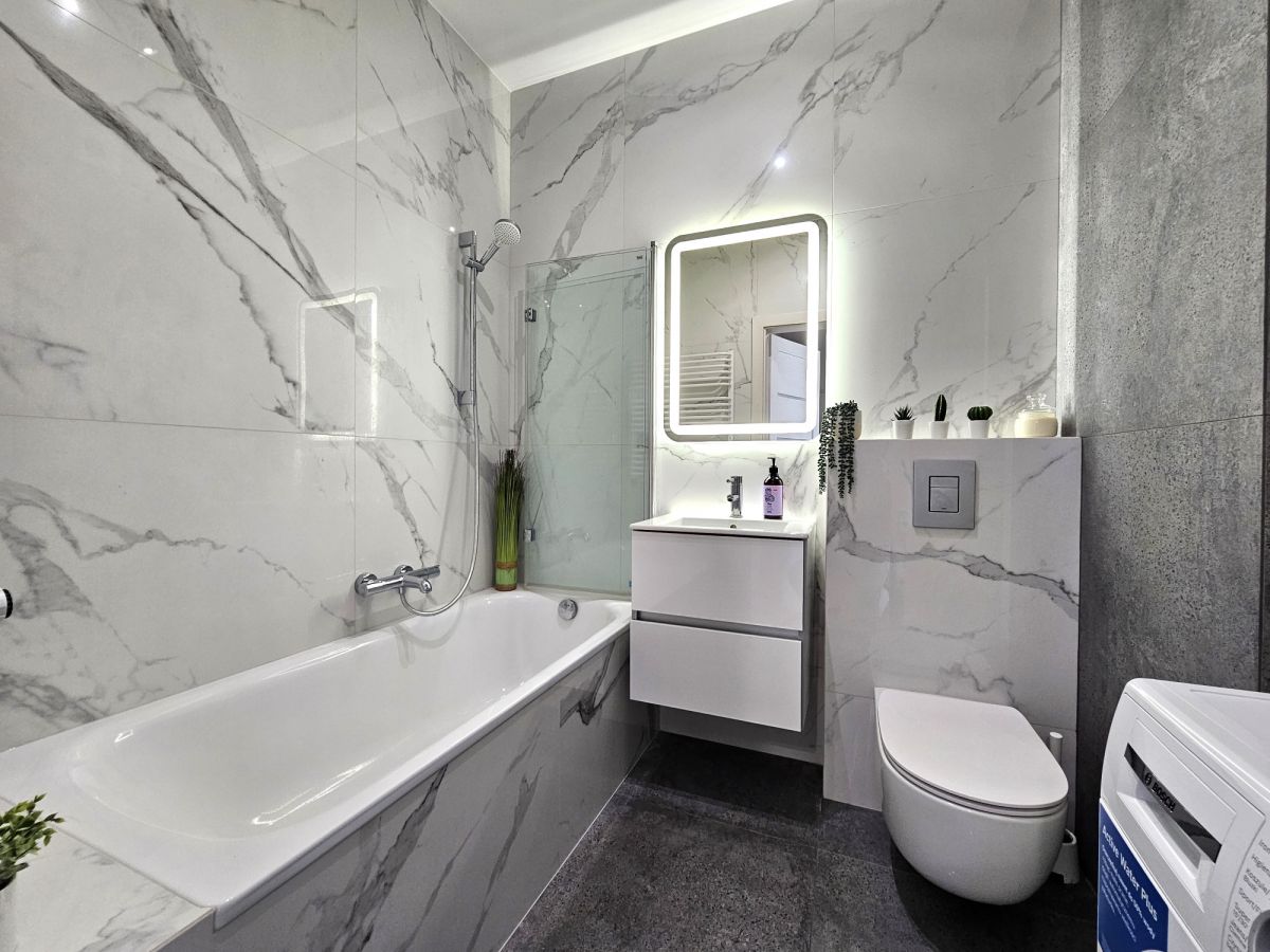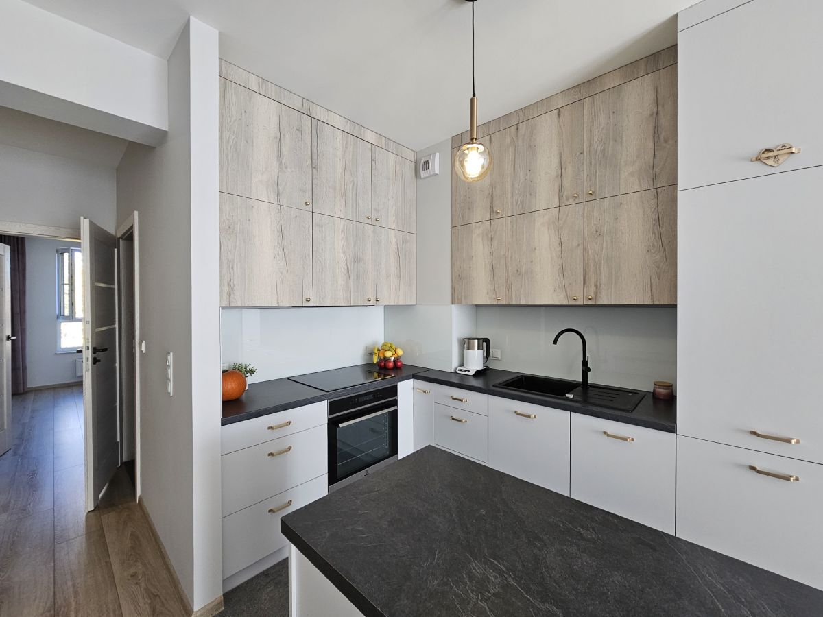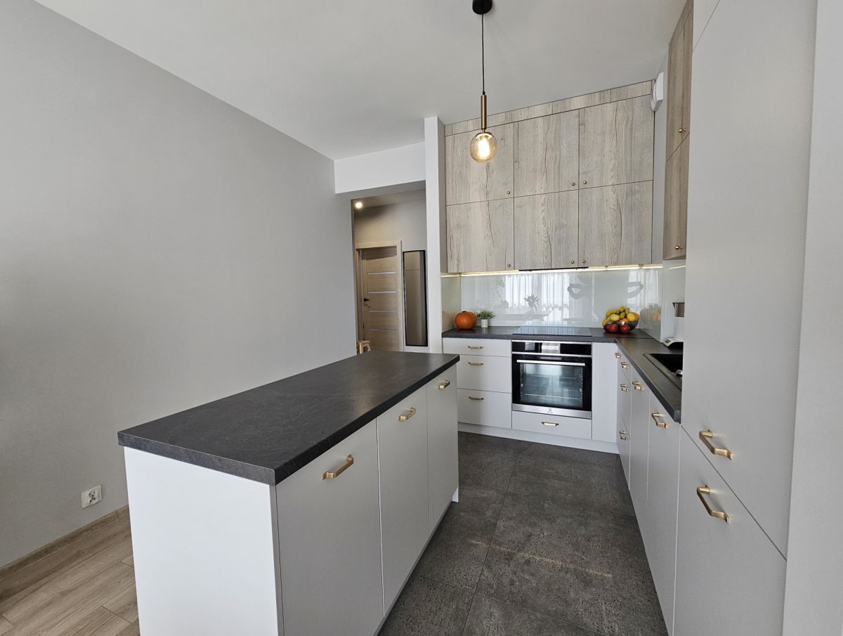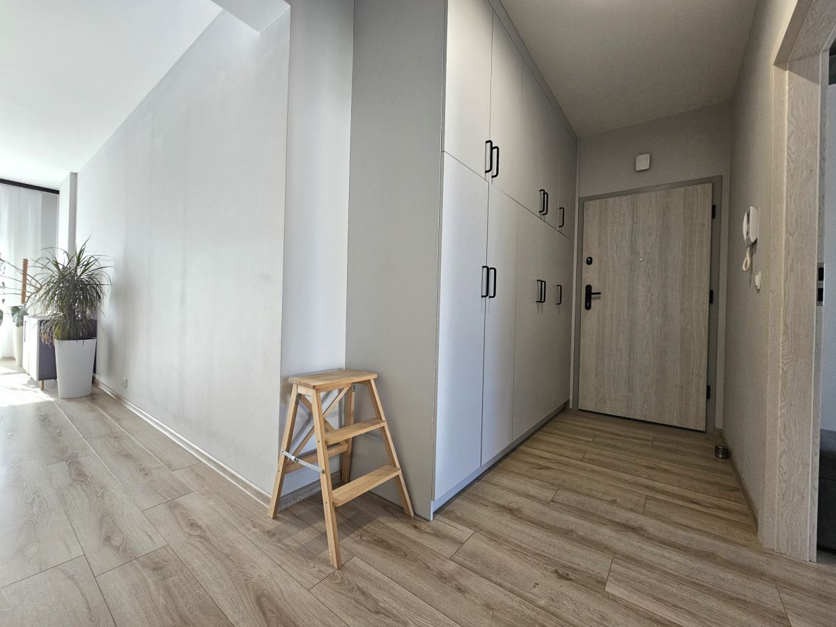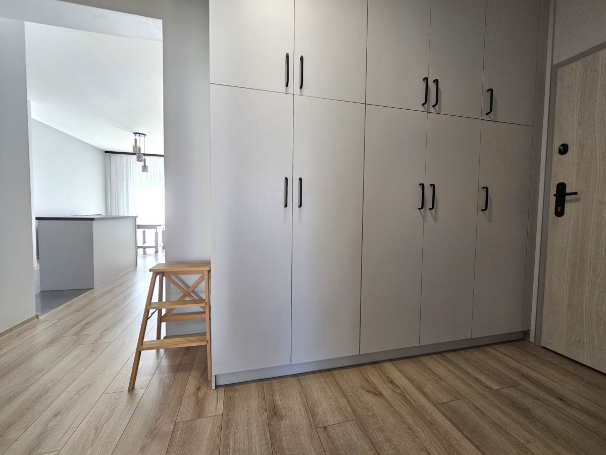 Nowocześnie urządzone z wyposażeniem, pełna zabudowa kuchni, duża szafa w przedpokoju, meble w łazience.