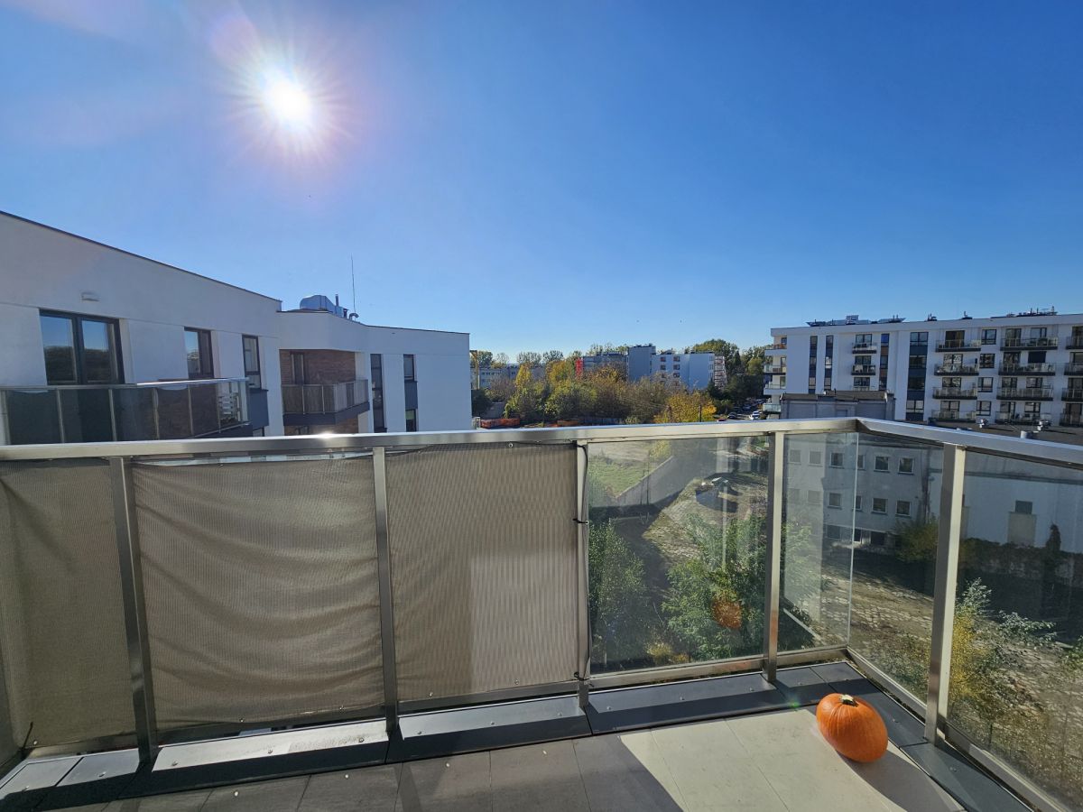 Balkon obszerny, można na nim wygodnie spędzać czas.
