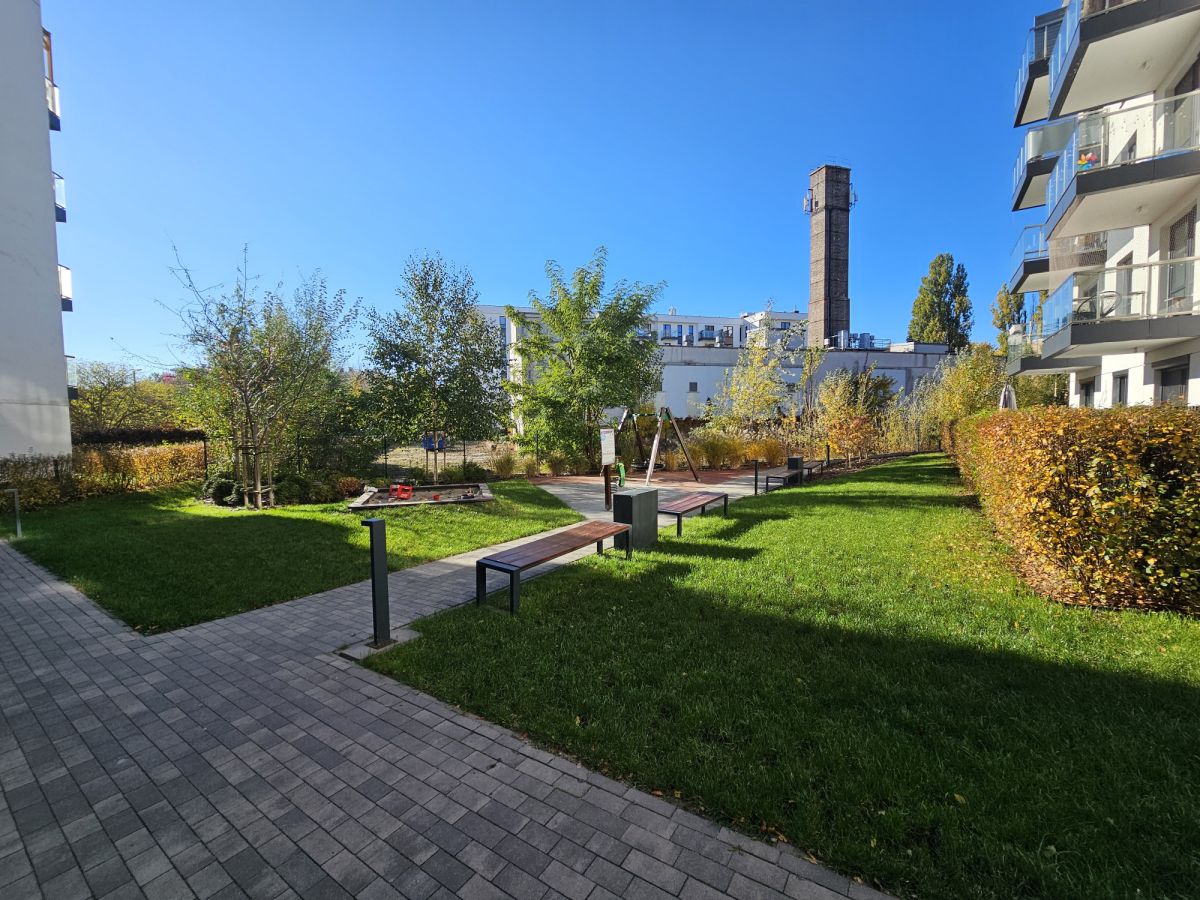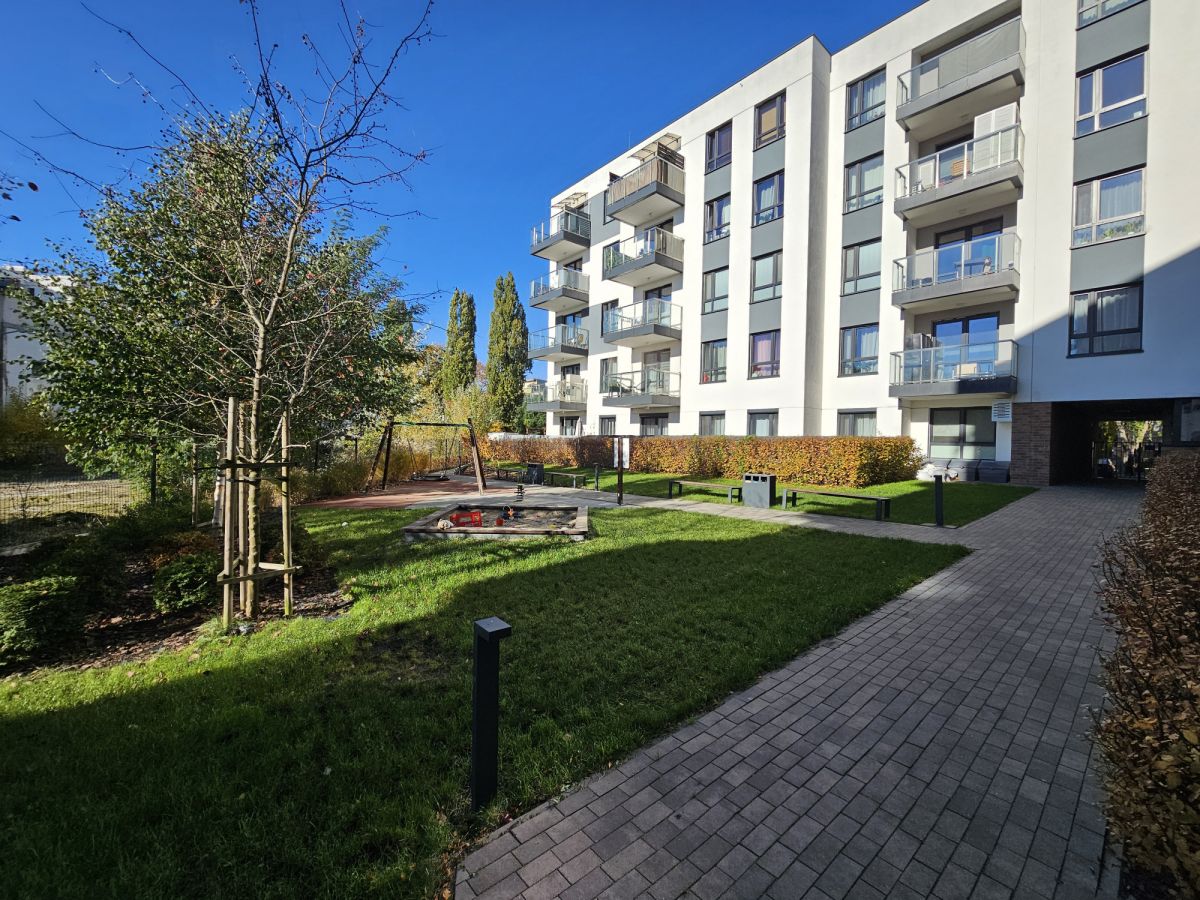 Mieszkanie znajduje się z dala od zgiełku ulic i miejskiego hałasu. Osiedle jest spokojne i kameralne, budynek ogrodzony i monitorowany. W okolicy znajduje się wiele udogodnień, takich jak szkoły podstawowe, przedszkola, apteki, basen i boiska sportowe, sklepy osiedlowe.