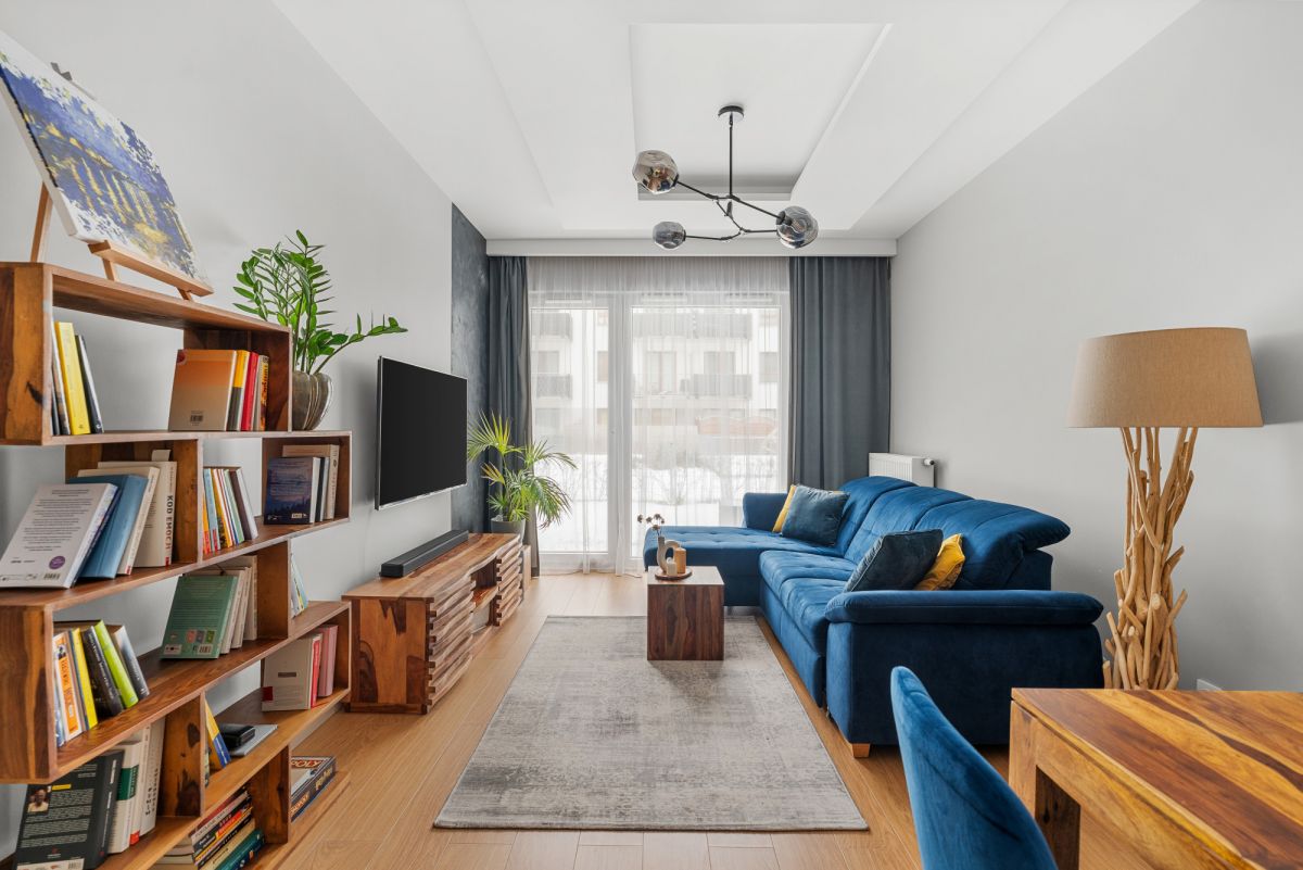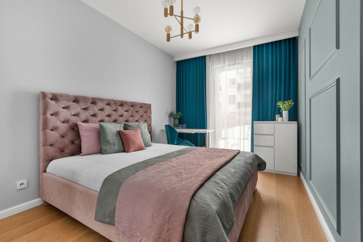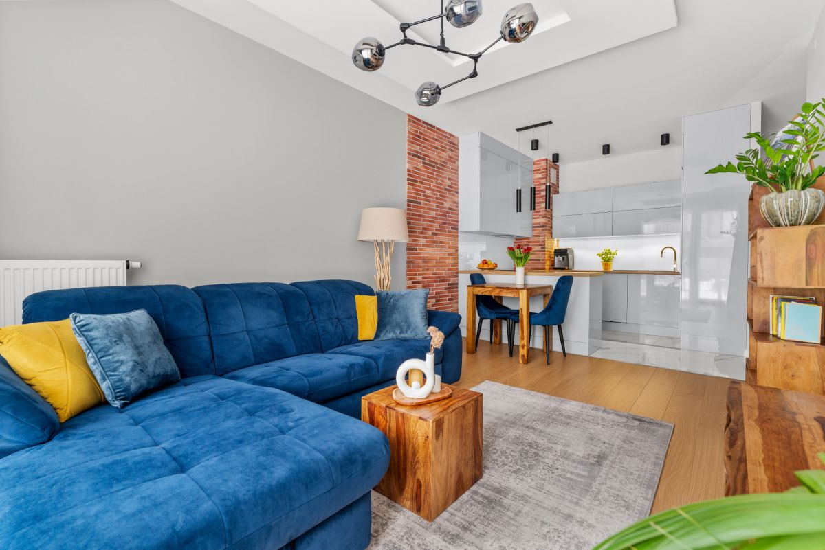 Na podłogach położono wysokiej jakości panele, a całość utrzymana jest w nowoczesnym, ponadczasowym stylu.