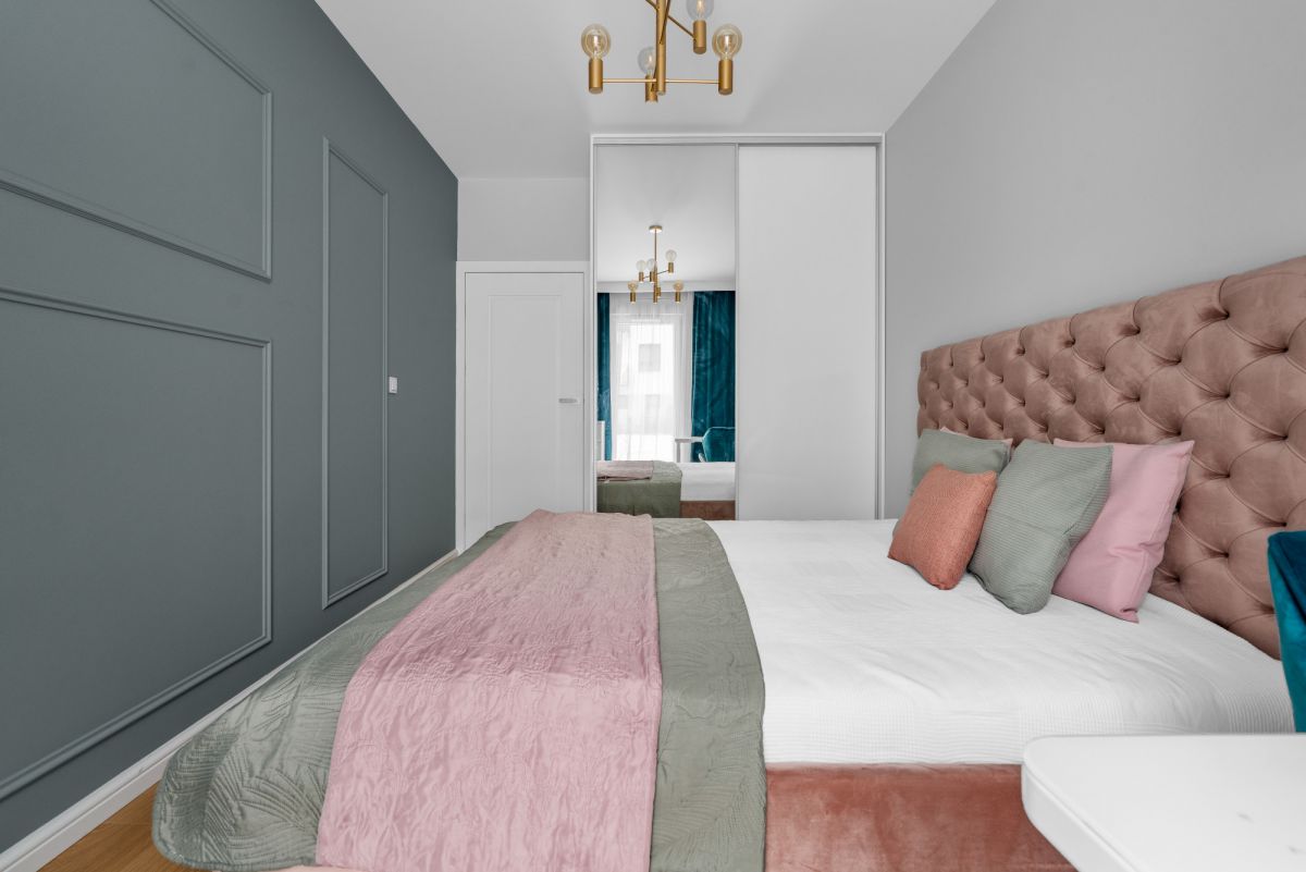 -Sypialnia z dużą szafą oraz łóżkiem 160×200, miejsce na biurko do pracy zdalnej