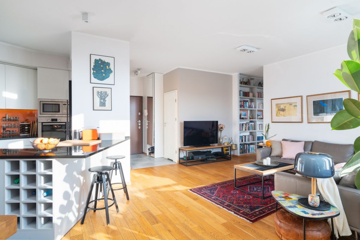 Bardzo jasny salon z jadalnią oraz aneksem kuchennym - 34,8 m2