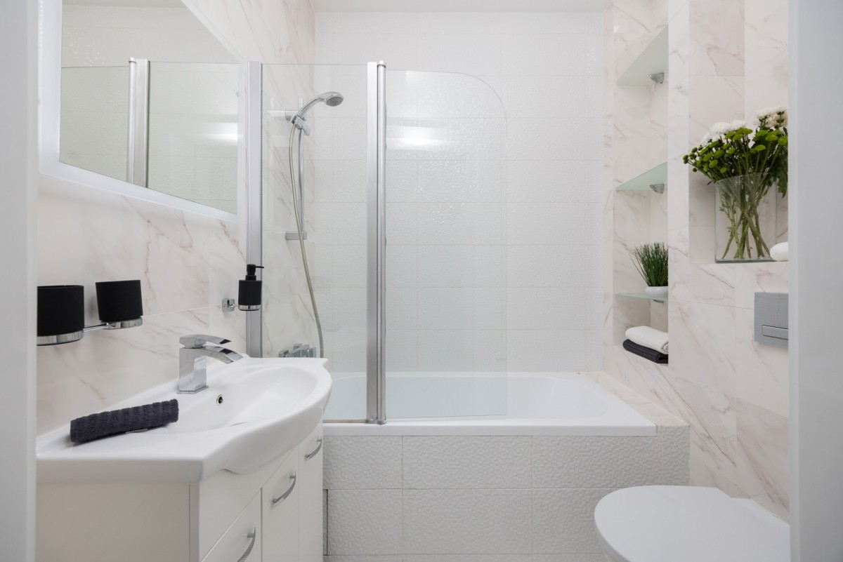 • łazienka z wanną i pralką,