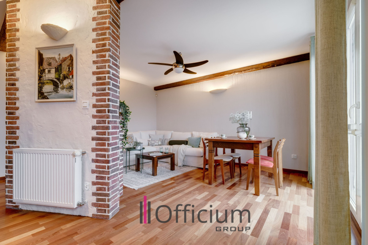 Przedmiotem sprzedaży jest unikatowy, niezwykle funkcjonalny apartament o powierzchni użytkowej 95,24 m², położony na 3. i 4. piętrze (z 4) kameralnego budynku z 2008 roku, zlokalizowanego w Ząbkach przy ul. Gajowej.