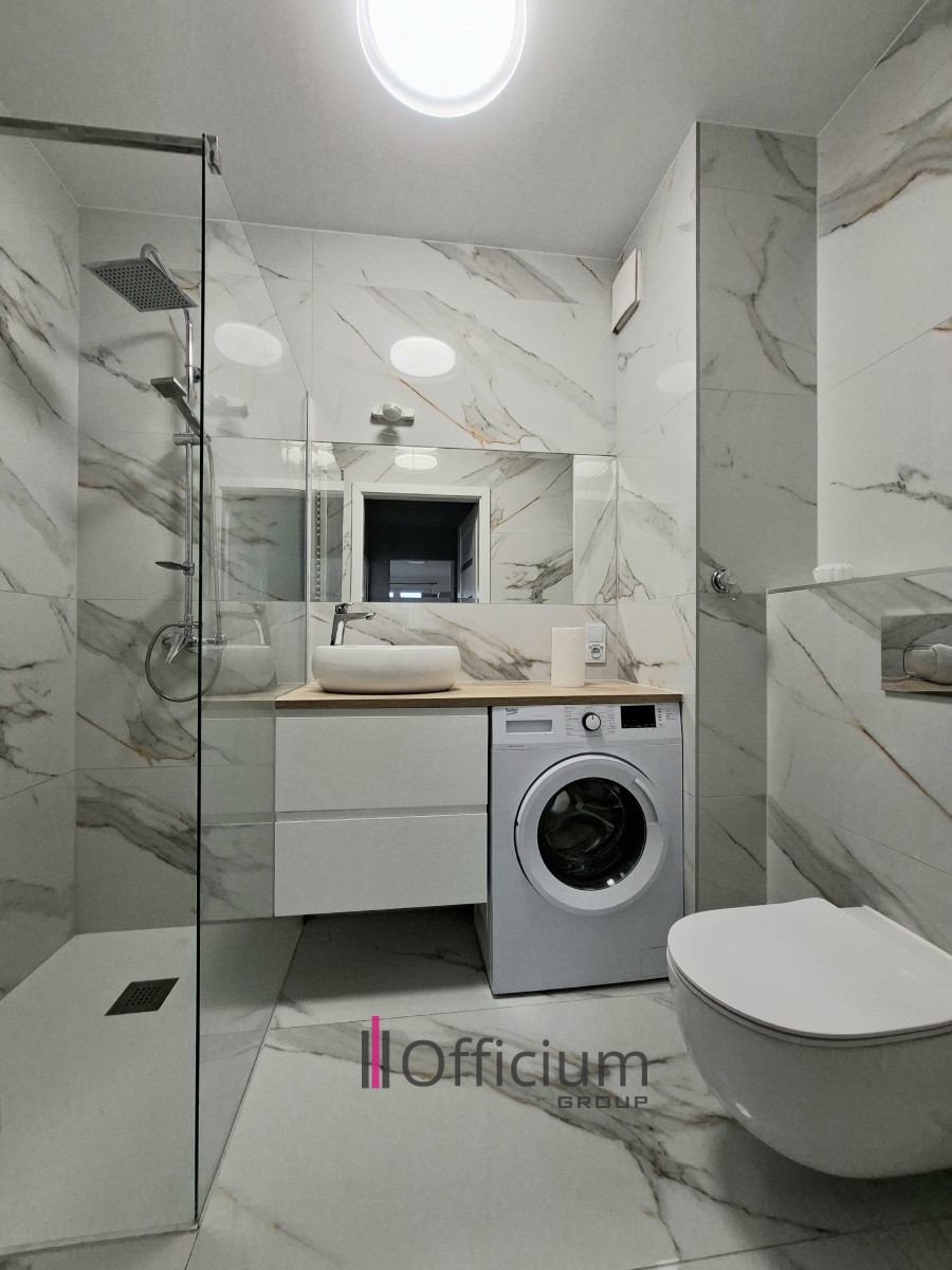 Mieszkanie widne, narożne i składa się z 2 niezależnych pokoi, salonu z aneksem kuchennym (piekarnik, płyta elektryczna, lodówka, zmywarka), łazienki z prysznicem i pralką oraz przestronnego holu z szafą w zabudowie. Umeblowanie jak na zdjęciach.