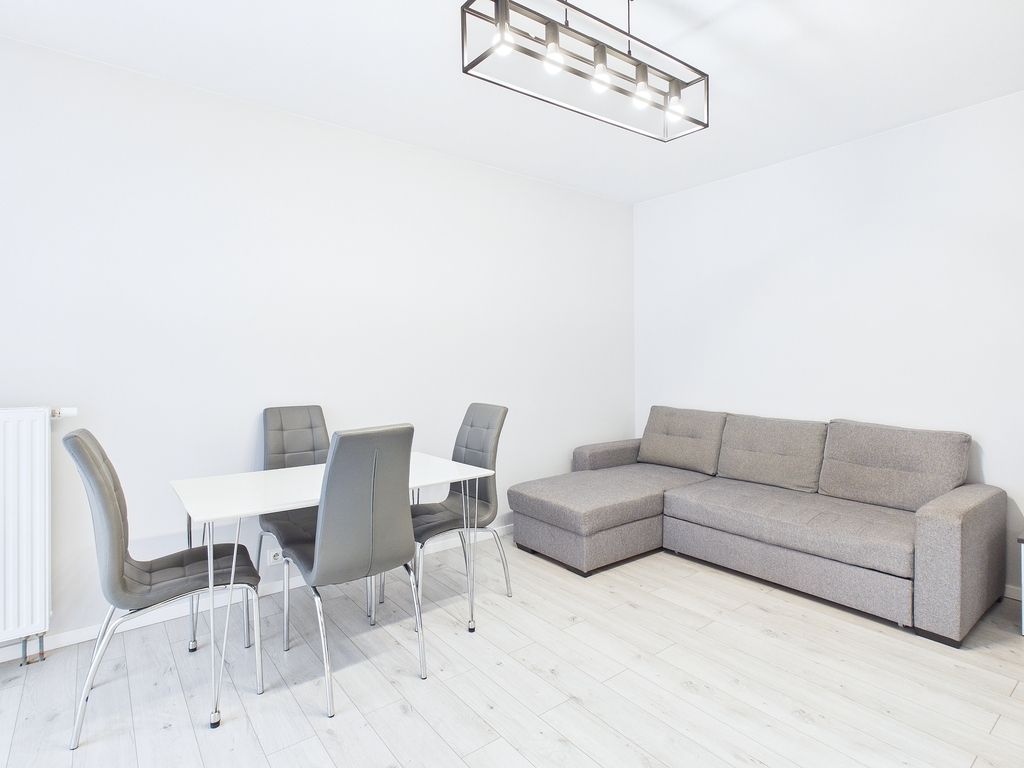 Mieszkanie o przemyślanym, nowoczesnym układzie, stan idealny – praktycznie nowe, bez konieczności dodatkowych nakładów. - salon z aneksem kuchennym,