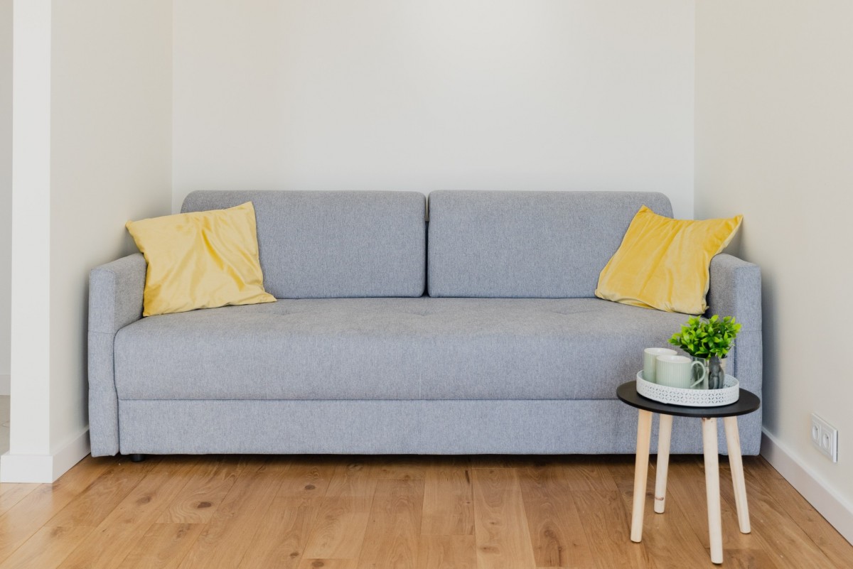 • Salonu z aneksem kuchennym w zabudowie w pełni wyposażonym sprzętem AGD