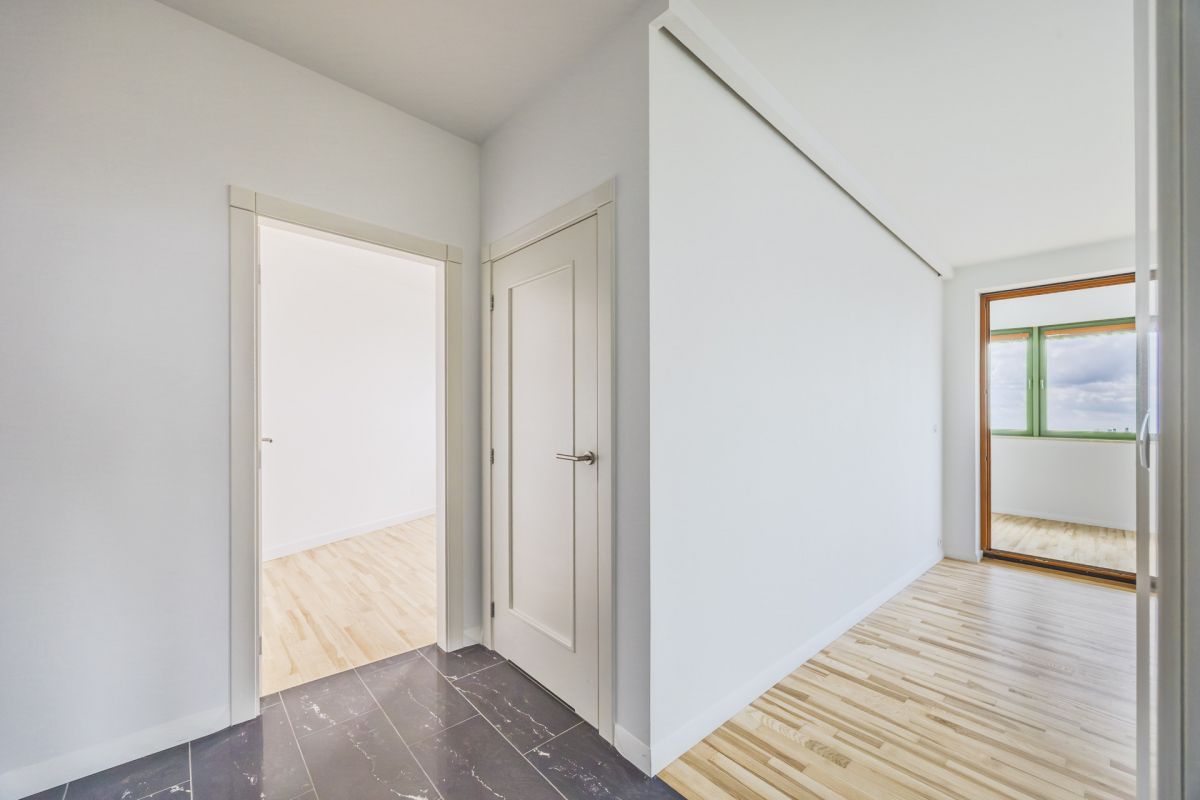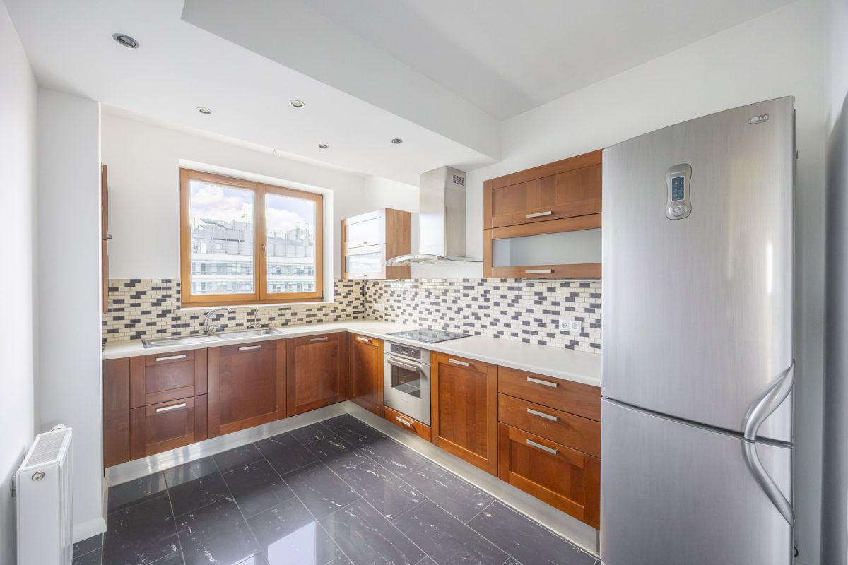 Mieszkanie wykończone w ciepłym, domowym stylu. Drewniane podłogi, duża ilość światła dziennego oraz funkcjonalny układ pomieszczeń zapewniają wysoki komfort życia.