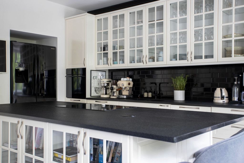 A representative living room with a functional kitchen and island - ideal for receiving guests and everyday family life.