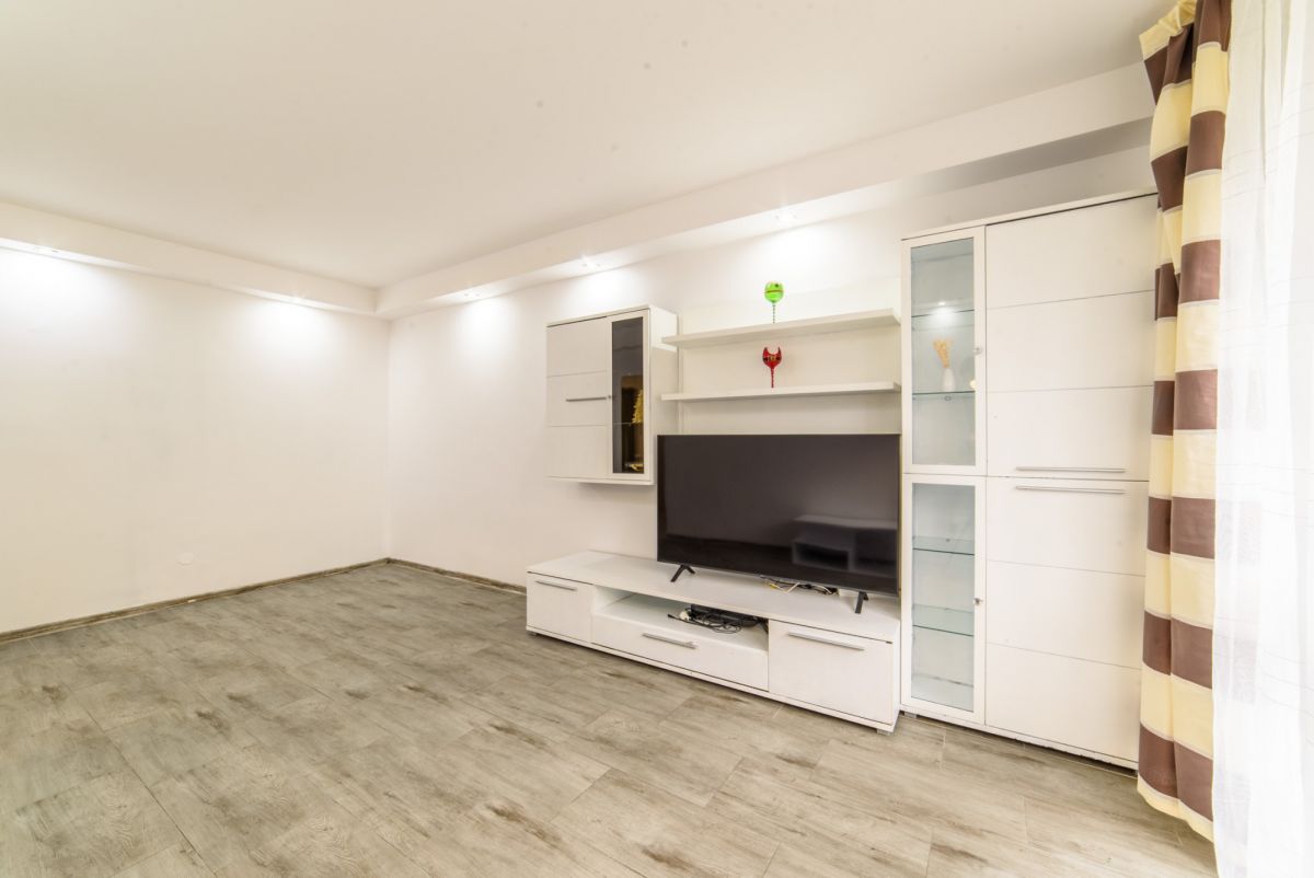 Większy pokój z regałem i telewizorem. Pokój może być doposażony przez właściciela.