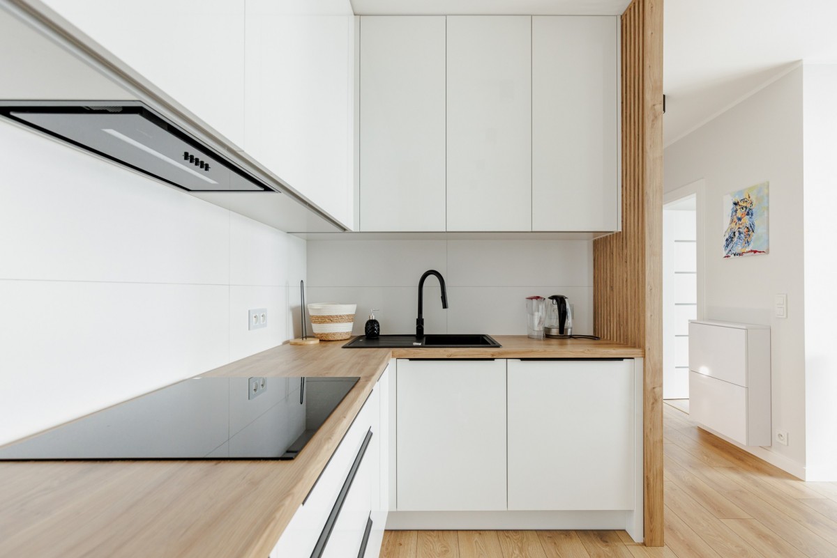 wyposażone w sprzęt AGD dobrej jakości, w tym lodówkę, zmywarkę, płytę indukcyjną, piekarnik oraz pralkę. Ekspozycja okien na wschód.