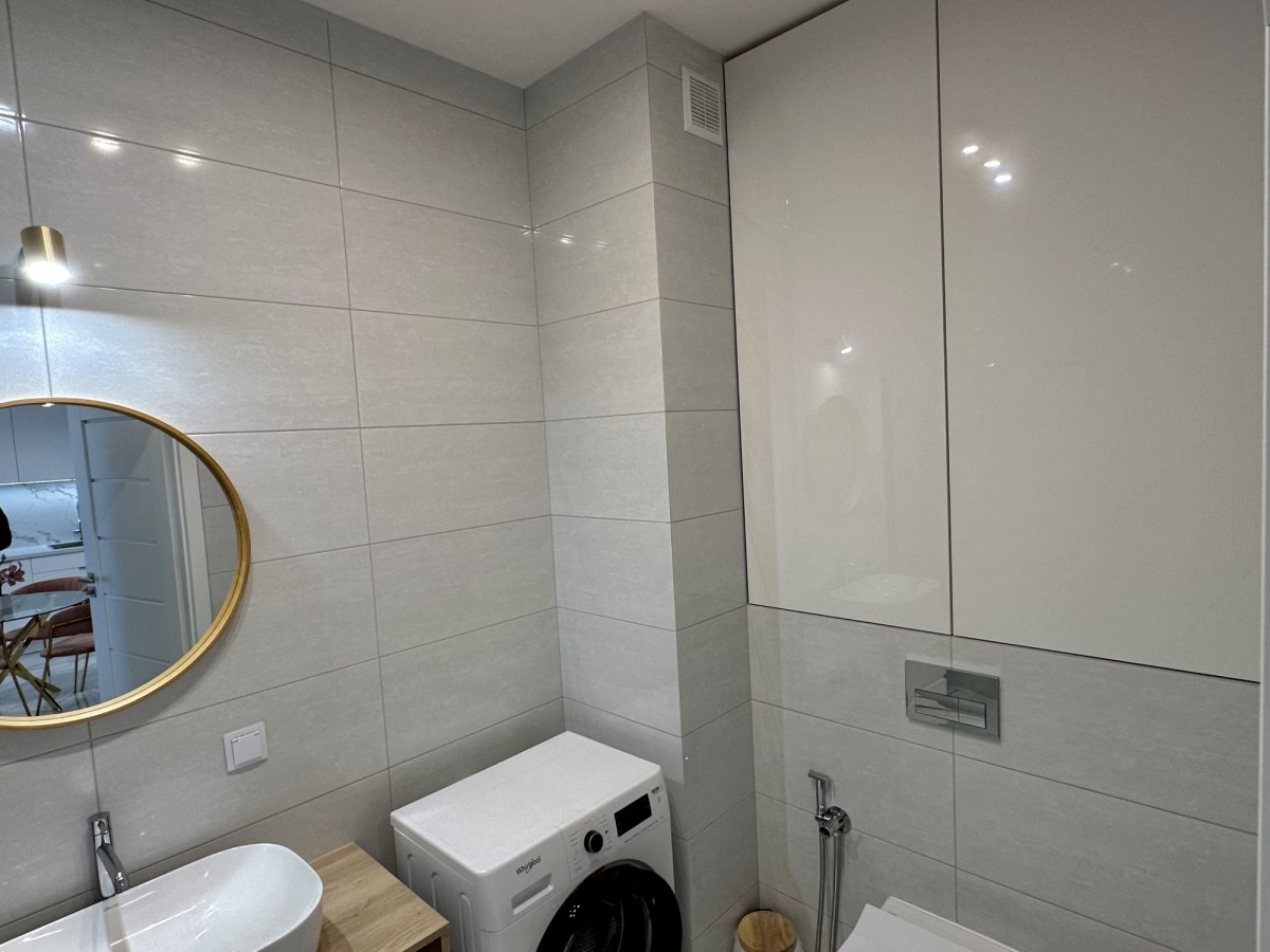 Nowe, gotowe do zamieszkania mieszkanie o powierzchni 44,67 m², położone na najwyższym - 5. piętrze budynku z 2022 roku. Lokal wykończony w wysokim standardzie, w pełni umeblowany, urządzony w nowoczesnym stylu z wykorzystaniem wysokiej jakości materiałów. Dużym atutem jest komfortowy balkon oraz jasne wnętrza, które tworzą przytulną i przyjemną przestrzeń do życia.