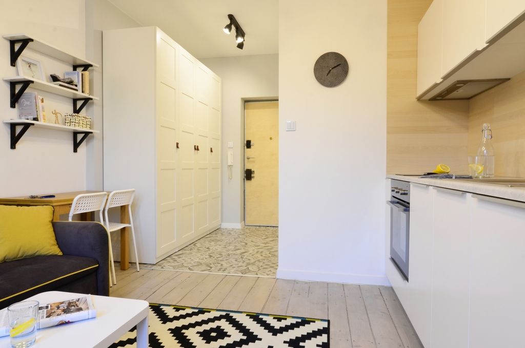 A cozy 20 m² studio apartment for rent, located in a tenement house at Dzielna 7B, in the heart of Warsaw – Wola/Muranów district.