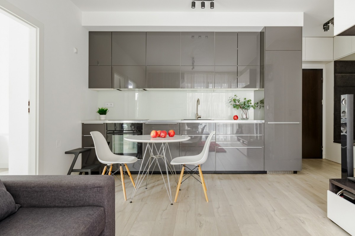 salonu z aneksem kuchennym - jasna i przestronna przestrzeń, z wyjściem na balkon, idealna do odpoczynku i spotkań;