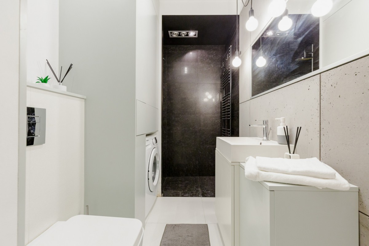 łazienki - wyposażonej w wannę lub prysznic oraz nowoczesne sanitariaty;