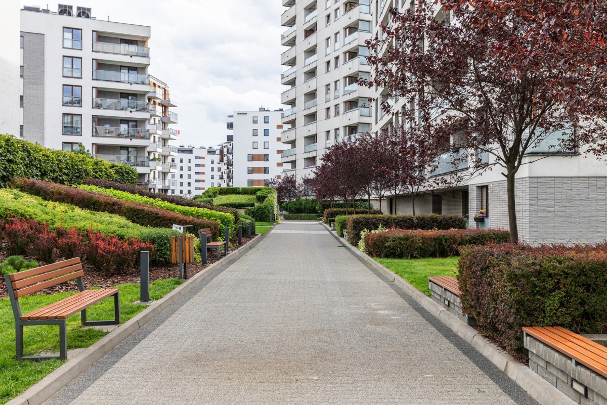 The apartment is located in a rapidly developing part of Wola, where many multi-family housing estates have been built in recent years. In the immediate vicinity, there are service and commercial outlets, restaurants, and cafes.