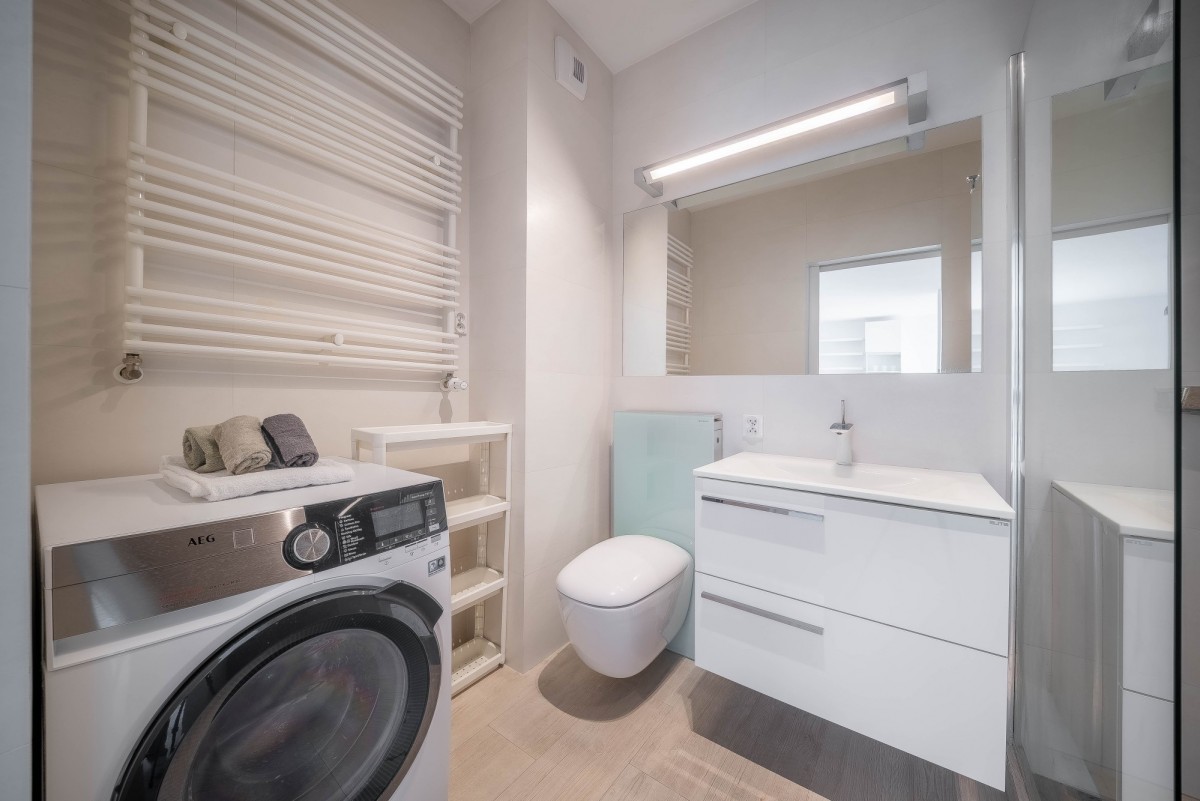 Łazienka: Nowocześnie wykończona i komfortowa.