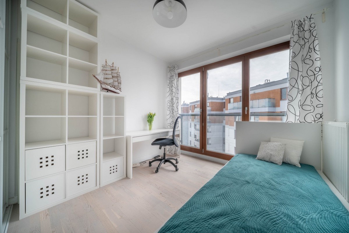 Dwie sypialnie: Ustawne pokoje, które mogą służyć jako sypialnia główna oraz pokój dla dziecka lub gabinet do pracy.